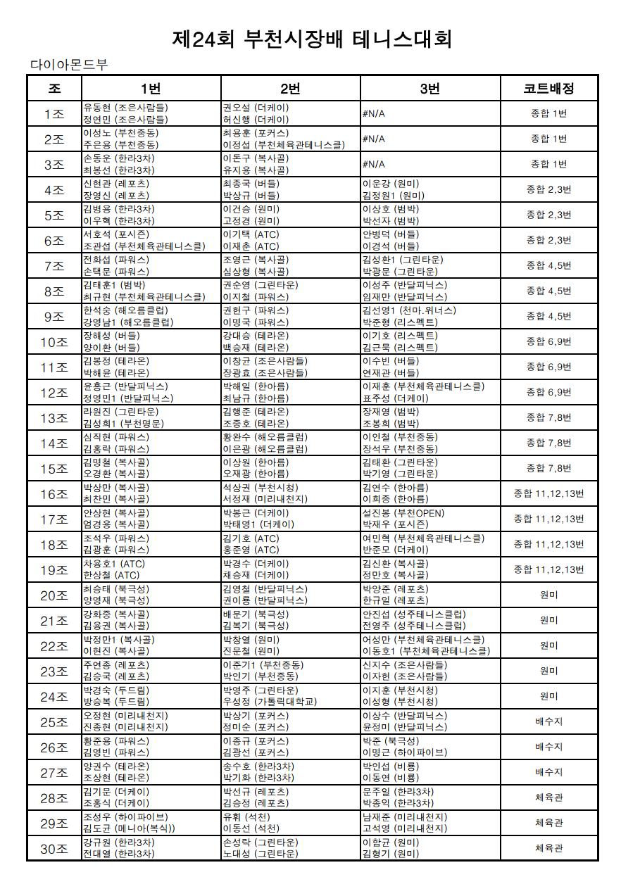 3. Á¦24ȸ ºÎõ½ÃÀå¹è Å״Ͻº´ëȸ¿¡ ÃâÀüÇϽô ¼±¼ö´Ô²²¼´Â ÁöÁ¤µÈ ÄÚÆ®ÀåÀ¸·Î 09:30±îÁö ÃâÀü½Å°í¸¦ ÇØ Áֽñ⸦ ¹Ù¶ó¸ç 09:30ºÐ ÀÌÈÄ¿¡ µµÂø ÇϽô ¼±¼ö´Ô²²¼´Â ÃâÀüÇÒ ¼ö ¾øÀ½À» ¾Ë·Áµå¸³´Ï´Ù.